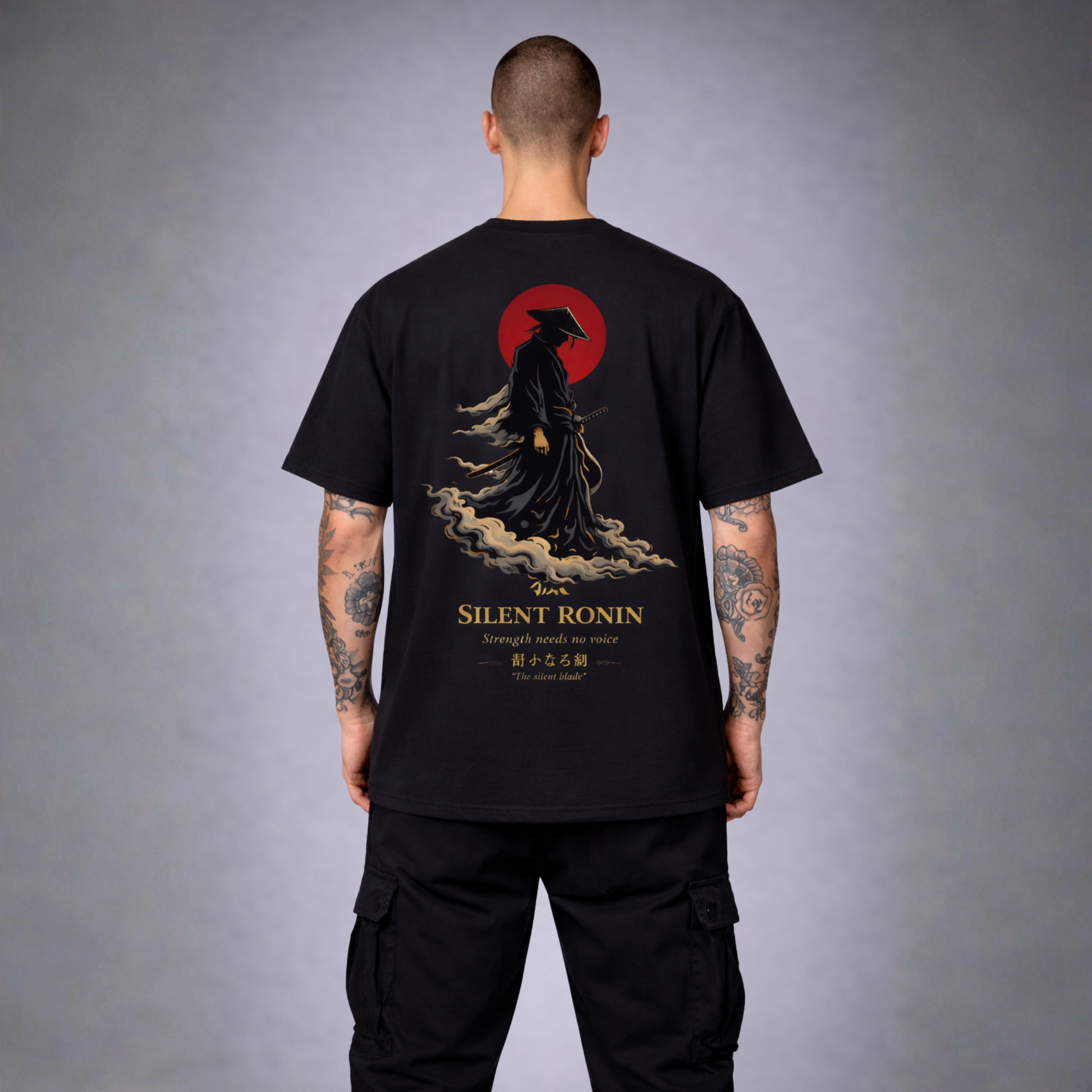 The inscription SILENT RONIN – Strength needs no voice underlines the message: True strength is silent.