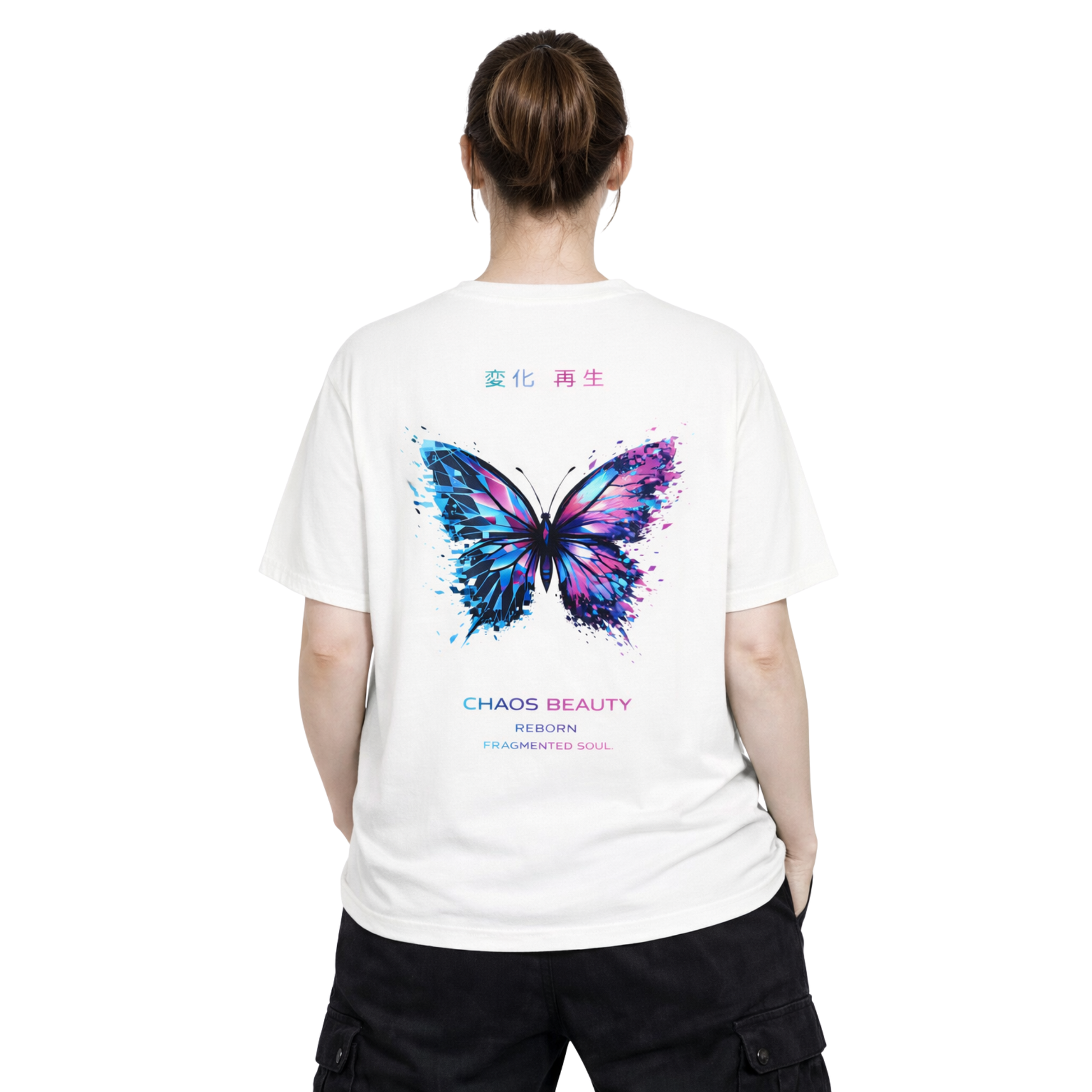 The Chaos Beauty T-shirt combines comfortable wear with a striking design in a modern cyberpunk style. The high-quality fabric ensures a pleasant feel for everyday use, while the durable print perfectly showcases the intense colors and details of the design.