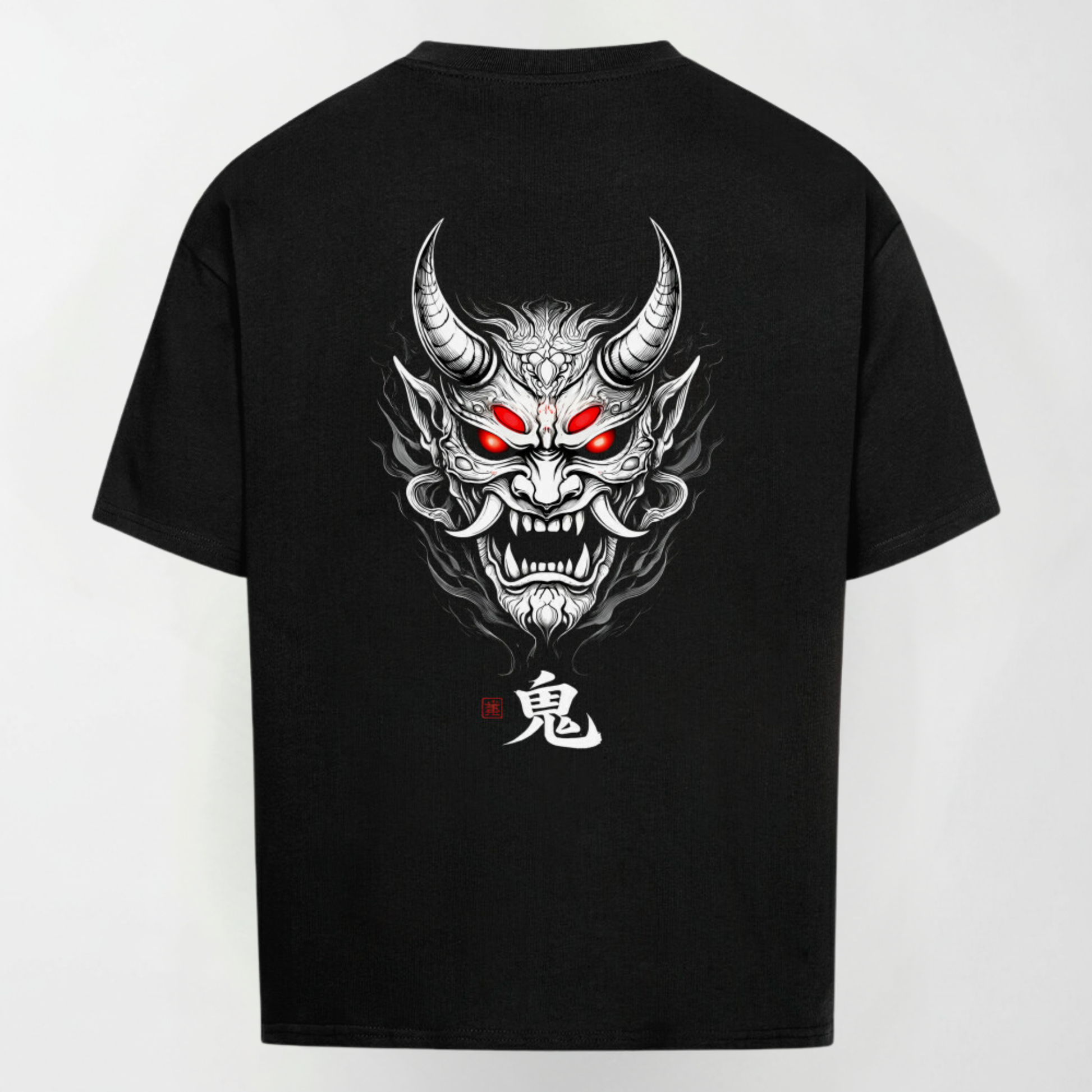 The Demon Skull T-shirt reduces the Oni to its purest essence. A demonic skull with glowing eyes – raw, brutal, and uncompromising.
