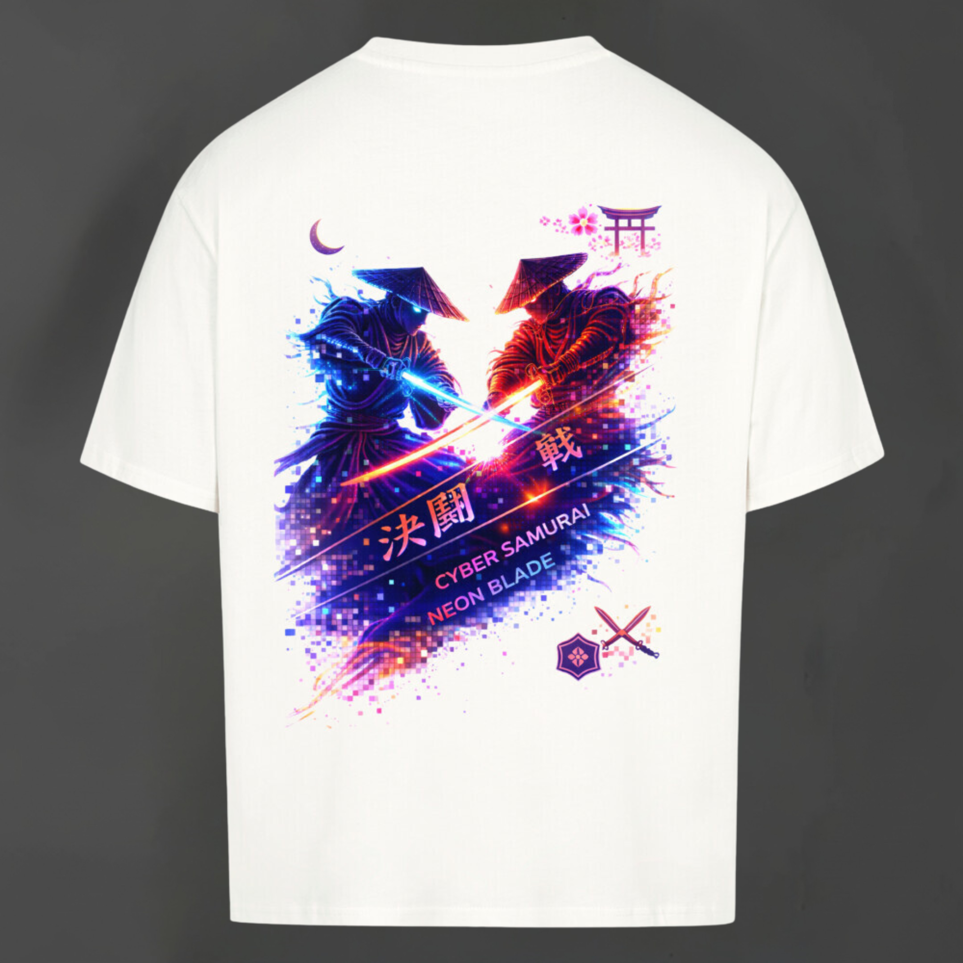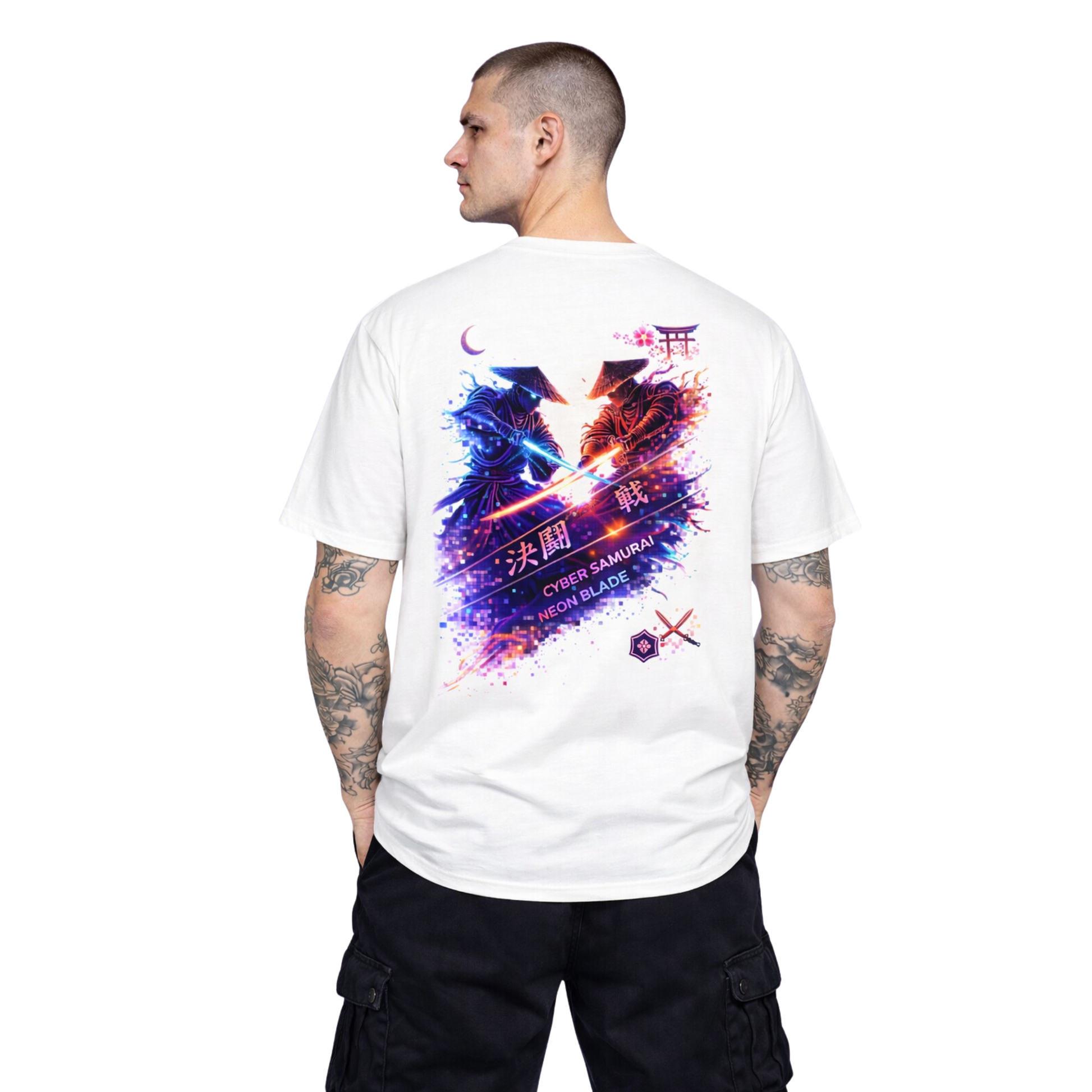 The Neon Blade Duel T-shirt combines comfortable wear with an energetic streetwear design. The durable print ensures that the design retains its vibrancy even after many washes.