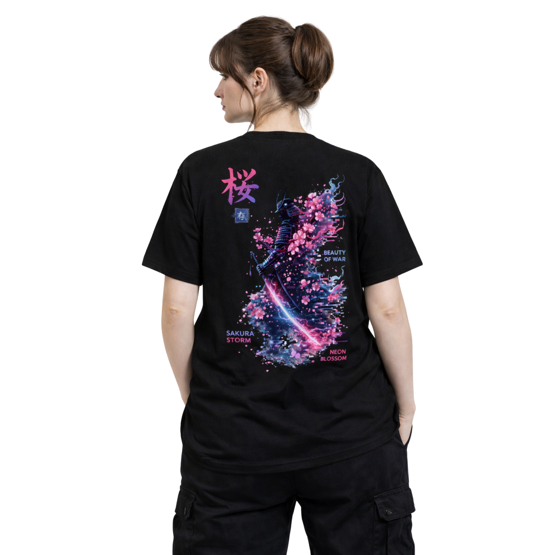 The Sakura Storm T-shirt combines comfortable wear with an epic streetwear design. The durable print perfectly showcases the vibrant colors and fine details of the cherry blossoms.